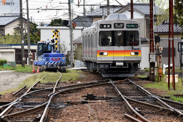 | 寺田駅に到着する17480形(17482)立山行普通電車 2017.4.21 寺田〔富山地方鉄道 本線〕 |
