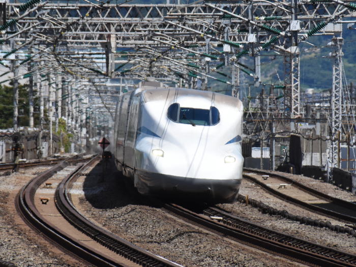 JR東海/東海道新幹線の小田原駅上りホームから新大阪に向けて疾走するのぞみを撮影しました。