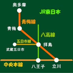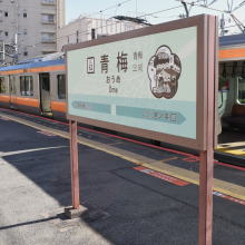 青梅駅はJR東日本・青梅線の中間駅です。 1894年/明治27年の青梅鉄道(立川-青梅)開通時に開業。 駅舎は1924年/大正13年に青梅鉄道本社ビルとして 鉄筋コンクリート造り3階建てに改築されました。 1944年に国有化され青梅線の駅になりました。 島式ホーム2面3線の地上駅で構内に側線が多くあります。 青梅-立川間,青梅-東京間の列車が頻繁に発着します。 東京・立川と奥多摩の直通列車はなく乗換えが必要です。 青梅駅はレトロステーションとして 駅名標やホーム,地下通路に昭和レトロ装飾しています。 |