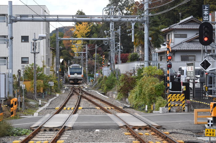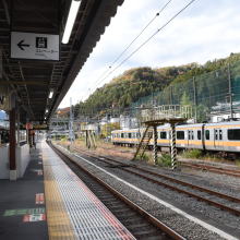 | 奥多摩から終着: 青梅駅に到着するE233系 | ||