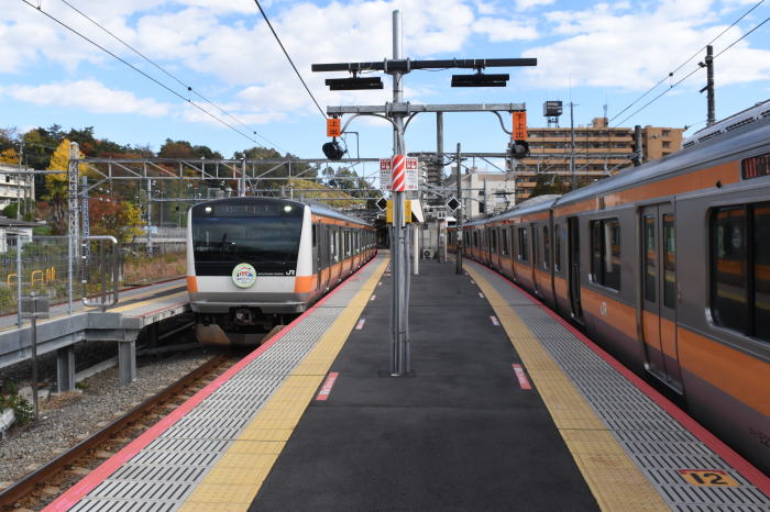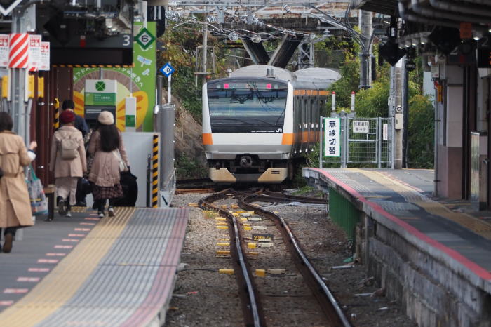 | 2番線で発車を待つ立川行普通E233系 | ||